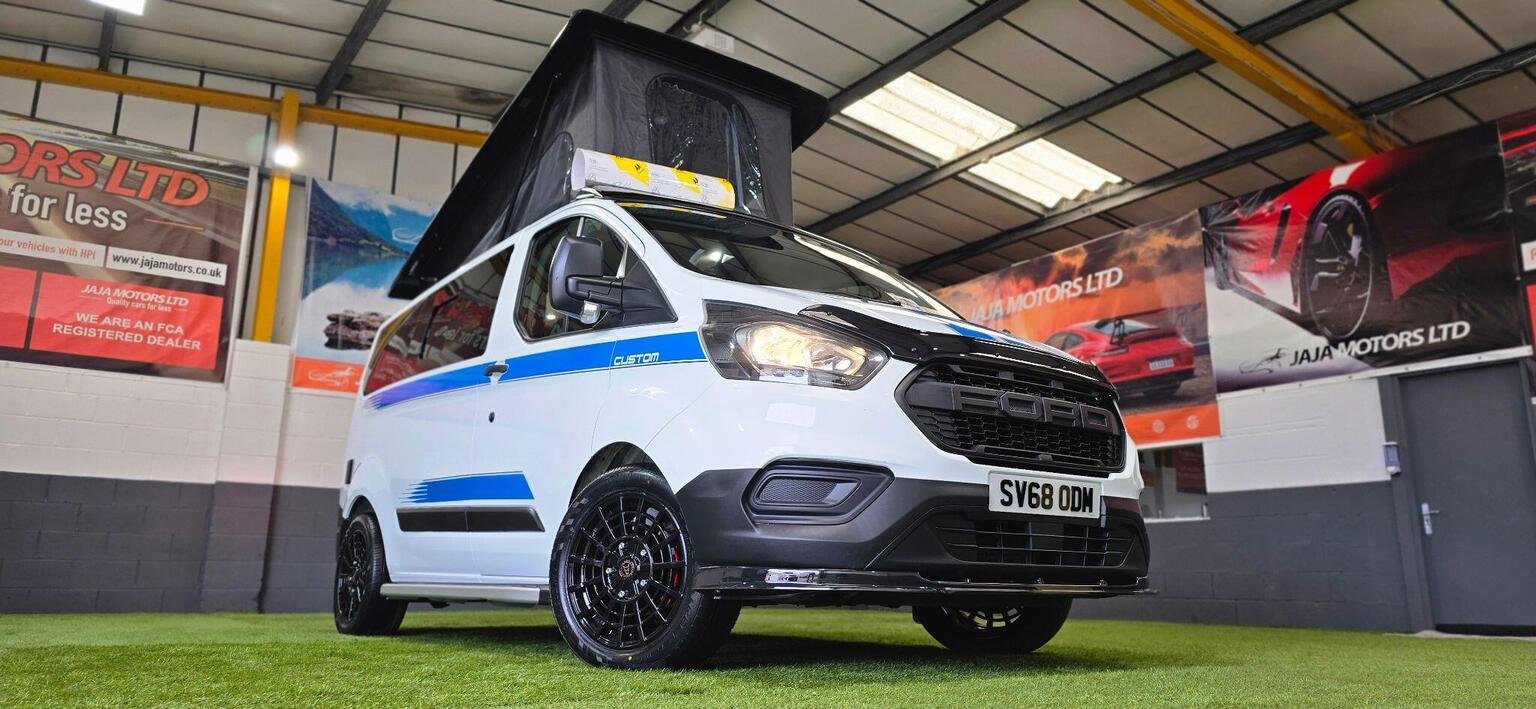 KINDLY WATCH FULL VIDEO, NO VAT “WHEN ITS GONE ITS GONE" HERE WE HAVE AN OTHER BRAND NEW CONVERSION & VERY STYLISH CAMPER VAN, PART EXCHANGE WELCOME, FINANCE AVAILABLE, FORD TRANSIT CUSTOM 2.0 280 EcoBlue PANEL VAN, 5dr DIESEL MANUAL L1 H1, SWB, EURO 6, ULEZ COMPLIANT, CONVERTED TO A VERY HIGH STANDARD, AUSTOPS POP TOP (3 YEAR MANUFACTURER WARRANTY OF POP TOP NATIONWIDE), 4 BIRTH, 5 BELTED SEATS, 240V HOOKUP POINT, FULLY INSULATED, BED BOARD WITH SPOT LIGHTS, VULCAN M1 CRASH TESTED ROCK & ROLL BED, PASSENGER DOUBLE SEATS SWIVEL, FRONT AND REAR SEATS FULLY TRIMMED, DOMETIC SINK AND HOB, 50L FRIDGE, CBE ELECTRIC TOUCH SCREEN CONTROL PANEL KIT, YILKAR NIGHT DIESEL HEATER, MICROWAVE, LEISURE BATTERY, SPLIT CHARGER, INVERTER, 240V SOCKET FROM INVERTER, 240V SOCKET FROM MAINS HOOK UP, 12V USB POINT, DOUBLE LIGHT SWITCH, LED LIGHTS FOR MAIN AREA, READING LIGHT, CO2 DETECTOR, GAS TEST CERTIFICATE, GAS BOTTLE WITH SAFETY LOCKER, WATER BOTTLE, BONNET DEFLECTOR, LOWER SPLITER, SIDE STEPS, REMOVABLE DINING TABLE, PRIVACY GLASS ALL AROUND & CURTAINS TO FRONT SIDE WINDOWS AND REAR, FULLY INSULATED, SOUND DEADENED, SOLAR PANEL, PORTA POTTI, HOOK UP CABLE, TV, POP TOP MATTRESS, 18" WOLFRACE BRAND NEW WHEEELS & TYRES, FULL SERVICE HISTORY, MAINTAINED VERY WELL, 12 MONTH NATIONWIDE WARRANTY WITH AA, 12 MONTH WARRANTY OF ALL APPLIANCES, 12 MONTH COMPLEMENTARY BREAKDOWN COVER WITH AA, NEXT MOT DUE 10/09/2026, COVERED 49723 WARRANTED MILEAGE (MOSTLY DONE ON MOTORWAY), TEST DRIVE HIGHLY RECOMMENDED, RESERVE NOW WITH A FULLY REFUNDABLE DEPOSIT,WE ARE AN FCA REGISTERED DEALER, APPROVED DEALER FOR PEGASUS FINANCE, LOW RATE 0% DEPOSIT FINANCE AVAILABLE, MORE TECHNICAL DETAILS & FEATURES KINDLY VISIT OUR WEBSITE www.jajamotors.co.uk VIEWINGS BY APPOINTMENT ONLY, BUY WITH CONFIDENCE SEE OUR CUSTOMER REVIEWS, CAN DELIVERY, CALL OR TEXT *01274497687 *07426062038 *HPI ALL CLEAR.