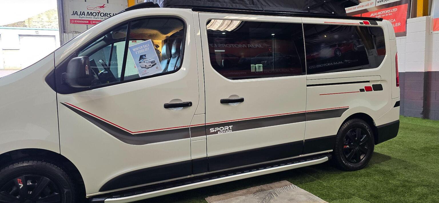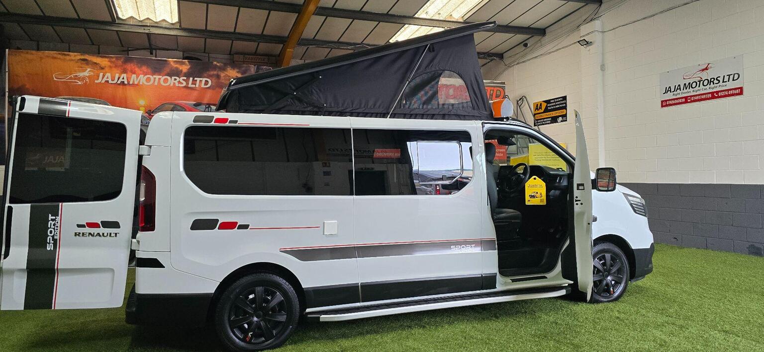 KINDLY WATCH FULL VIDEO, NO VAT “WHEN ITS GONE ITS GONE" HERE WE HAVE AN OTHER BRAND NEW CONVERSION & VERY STYLISH CAMPER VAN, PART EXCHANGE WELCOME, FINANCE AVAILABLE, RENAULT TRAFIC 2.0 DCI BLUE LL30 BUISNESS+ CAMPER VAN 5DR DIESEL MANUAL , LWB, EURO 6 (S/S) (130 PS), CONVERTED TO A VERY HIGH STANDARD, POP TO ROOF WITH BED, 4 BIRTH, 5 SEATS, M1 CRASH TESTED RECLINER ROCK AND ROLL BED, 50L FRIDGE/FREEZER, DOMETIC TWIN BURNER GAS HOB & SINK, GAS OVEN &GRILL, TV & LED LIGHTS, SPLIT CHARGER, PLUG SOCKETS, USB CHARGING POINT, LEISURE BATTERY, EXTERNAL 240v HOOK UP, GAS BOTTLE WITH LOCKER & ALL TESTED, COMES WITH TEST CERTIFICATE, WATER BOTTLE, SIDE STEPS, REMOVABLE DINING TABLE, PRIVACY GLASS ALL AROUND & CURTAINS TO FRONT SIDE WINDOWS AND REAR, FULLY INSULATED, SOUND DEADENED, SOLAR PANEL, INVERTER, HIGH QUALITY NIGHT DIESEL HEATER, ELECTRIC CONTROL PANEL KIT, READING LIGHT, THE REAR SEATS CONVERT INTO A ROCK AND ROLL BED (WITH UNDER-STORAGE) AND THE FRONT PASSENGER SEATS SWIVEL TO FACE INWARDS PROVIDING A COSY SOCIABLE SPACE, FULL SERVICE HISTORY, MAINTAINED VERY WELL, 6 MONTHS NATIONWIDE WARRANTY WITH AA, 12 MONTHS COMPLEMENTARY BREAK DOWN COVER WITH AA, 12 MONTHS WARRANTY OF ALL APPLIANCES, FRESH MOT, COVERED 75326 WARRANTED MILEAGE (MOSTLY DONE ON MOTORWAY), ONLY 1 OWNER, 2 KEYS, RADIO, USB, BLUETOOTH, PARKING SENSORS, AIR CONDITIONING, PORTA POTTI, POP TOP MATTRESS, HOOK UP CABLE, DRIVE AWAY AWNING, MANY MORE FEATURES, TEST DRIVE HIGHLY RECOMMENDED, RESERVE NOW WITH A FULLY REFUNDABLE DEPOSIT, WE ARE AN FCA REGISTERED DEALER, APPROVED DEALER FOR CAR FINANCE 247 & PEGASUS FINANCE, MORE TECHNICAL DETAILS & FEATURES KINDLY VISIT OUR WEBSITE www.jajamotors.co.uk VIEWINGS BY APPOINTMENT ONLY, BUY WITH CONFIDENCE SEE OUR CUSTOMER REVIEWS, NATIONWIDE FREE HOME DELIVERY AVAILABLE, WE ARE OPEN 7 DAYS A WEEK CALL OR TEXT *** 01274497687 *** *** 07426062038 *** ANY TIME***THIS CAMPER-VAN IS HPI ALL CLEAR