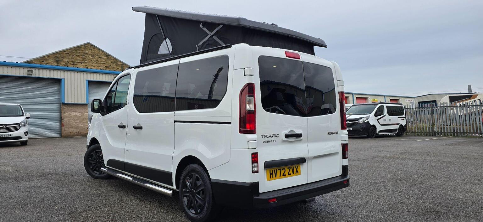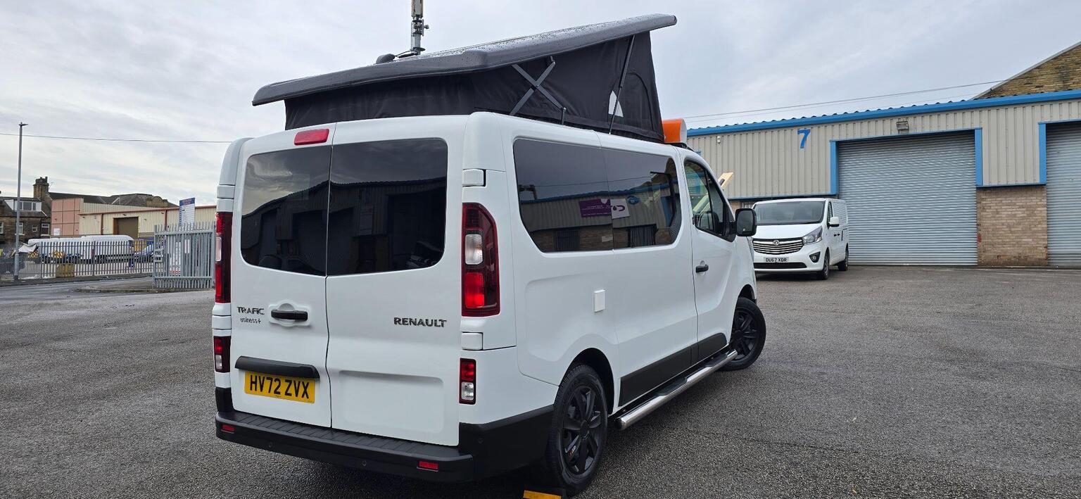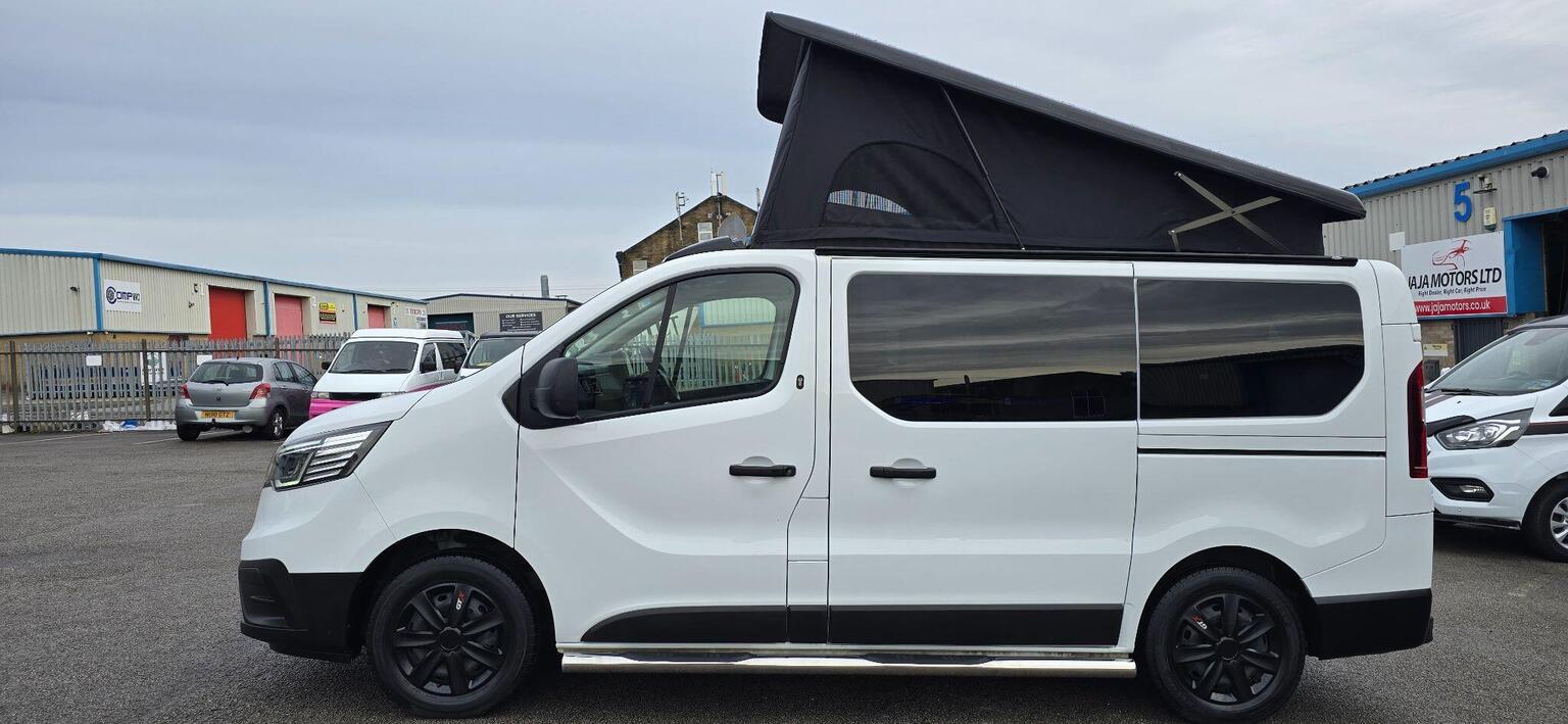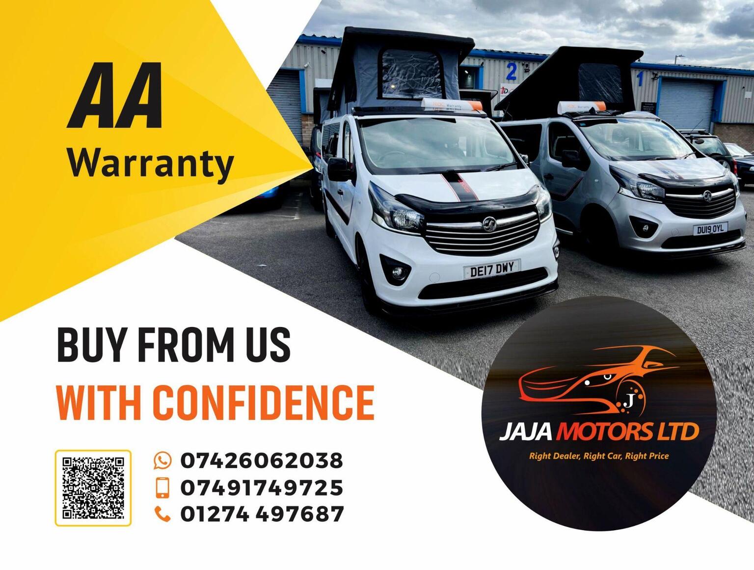 KINDLY WATCH FULL VIDEO, NO VAT “WHEN ITS GONE ITS GONE" HERE WE HAVE AN OTHER BRAND NEW CONVERSION & VERY STYLISH CAMPER VAN, PART EXCHANGE WELCOME, FINANCE AVAILABLE, RENAULT TRAFIC 2.0 dCi BLUE SL28 BUSINESS+, CAMPERVAN 5DR DIESEL MANUAL, EURO 6 (S/S) (130 PS), CONVERTED TO A VERY HIGH STANDARD, POP TO ROOF WITH BED, SCENIC POPTOP, 4 BIRTH, 5 SEATS, M1 CRASH TESTED RECLINER ROCK AND ROLL BED, 50L FRIDGE/FREEZER, DOMETIC TWIN BURNER GAS HOB & SINK, OVEN, TV & LED LIGHTS, SPLIT CHARGER, PLUG SOCKETS, USB CHARGING POINT, LEISURE BATTERY, EXTERNAL 240v HOOK UP, GAS BOTTLE WITH LOCKER & COMES WITH SAFETY CERTIFICATE, WATER BOTTLE, SIDE BARS, AWNING RAIL, REMOVABLE DINING TABLE, PRIVACY GLASS ALL AROUND & CURTAINS TO FRONT SIDE WINDOWS AND REAR, FULLY INSULATED, SOUND DEADENED, SOLAR PANEL, INVERTER, HIGH QUALITY NIGHT DIESEL HEATER, READING LIGHT, THE REAR SEATS CONVERT INTO A ROCK AND ROLL BED (WITH UNDER-STORAGE) AND THE FRONT PASSENGER SEATS SWIVEL TO FACE INWARDS PROVIDING A COSY SOCIABLE SPACE, FULL SERVICE HISTORY, MAINTAINED VERY WELL, 6 MONTHS NATIONWIDE WARRANTY WITH AA, 12 MONTHS COMPLEMENTARY BREAK DOWN COVER WITH AA, 12 MONTHS WARRANTY OF ALL APPLIANCES, NEXT MOT DUE DATE 01/01/2027, COVERED 45561 WARRANTED MILEAGE (MOSTLY DONE ON MOTORWAY), ONLY 1 PREVIOUS OWNER, 2 KEYS, DAB, RADIO, USB, PORTA POTTI, POP TOP MATTRESS, HOOK UP CABLE, MANY MORE FEATURES, TEST DRIVE HIGHLY RECOMMENDED, RESERVE NOW WITH A FULLY REFUNDABLE DEPOSIT, WE ARE AN FCA REGISTERED DEALER, APPROVED DEALER FOR CAR FINANCE 247 & PEGASUS FINANCE, MORE TECHNICAL DETAILS & FEATURES KINDLY VISIT OUR WEBSITE www.jajamotors.co.uk VIEWINGS BY APPOINTMENT ONLY, BUY WITH CONFIDENCE SEE OUR CUSTOMER REVIEWS, NATIONWIDE HOME DELIVERY AVAILABLE, WE ARE OPEN 7 DAYS A WEEK CALL OR TEXT *** 01274497687 *** *** 07426062038 *** ANY TIME***THIS CAMPER-VAN IS HPI ALL CLEAR.