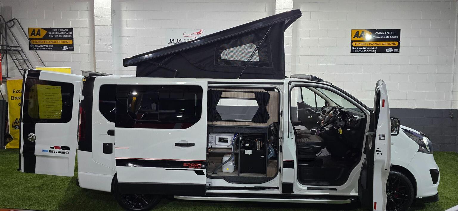KINDLY WATCH FULL VIDEO “WHEN ITS GONE ITS GONE" HERE WE HAVE AN OTHER BRAND NEW CONVERSION & VERY STYLISH CAMPER VAN, PART EXCHANGE WELCOME, FINANCE AVAILABLE, NO VAT, VAUXHALL VIVARO 1.6 CDTi 2900 BiTurbo ecoTEC SPORTIVE CAMPER VAN, 5dr DIESEL, MANUAL, LWB, EURO 6 (S/S) (125 ps), ULEZ COMPLIANT, TWIN SLIDING DOORS, CONVERTED TO A VERY HIGH STANDARD, POP TO ROOF WITH BED, 4 BIRTH, 5 SEATS, M1 CRASH TESTED VULCAN ROCK AND ROLL BED WITH RECLINER, PLENTY OF STORAGE, FRIDGE/FREEZER, TWIN BURNER & SINK, MICROWAVE, TV & LED LIGHTS, 240v SOCKETS, USB POINTS, LEISURE BATTERY, 240v HOOK UP, GAS BOTTLE WITH LOCKER & COMES WITH GAS SAFETY CERTIFICATE, WATER BOTTLE, BONNET DEFLECTOR, SIDE STEPS, LOWER SPLITTER, REMOVABLE DINING TABLE, PRIVACY GLASS ALL AROUND & CURTAINS TO FRONT SIDE WINDOWS AND REAR, FULLY INSULATED, SOUND DEADENED, INVERTER, SPLIT CHARGER, SOLAR PANEL, NIGHT DIESEL HEATER, SMOKE DETECTOR, FIRE EXTINGUISHER, THE REAR SEATS CONVERT INTO A ROCK AND ROLL BED (WITH UNDER-STORAGE) AND THE FRONT PASSENGER SEATS SWIVEL TO FACE INWARDS PROVIDING A COSY SOCIABLE SPACE, FULL SERVICE HISTORY, MAINTAINED VERY WELL, 6 MONTHS NATIONWIDE WARRANTY WITH AA, 12 MONTHS FREE BREAK DOWN COVER WITH AA, 12 MONTHS WARRANTY OF ALL APPLIANCES, COMES WITH FRESH MOT, JUST COVERED 29105 WARRANTED MILEAGE (MOSTLY DONE ON MOTORWAY), BRAND NEW 18" ALLOYS WHEELS & TYRES, PARKING SENSORS, CRUISE CONTROL, AIR CONDITIONING, SAT NAV, BLUETOOTH, USB, PORTA POTTI, POP TOP MATTRESS, HOOK UP CABLE, 1 OWNER, 2 KEYS, JUST DONE FULL SERVICE, TEST DRIVE HIGHLY RECOMMENDED, RESERVE NOW WITH A FULLY REFUNDABLE DEPOSIT, WE ARE AN FCA REGISTERED DEALER, APPROVED DEALER FOR CAR FINANCE 247 & PEGASUS FINANCE, MORE TECHNICAL DETAILS & FINANCE CALCULATION OF THIS CAMPER KINDLY VISIT OUR WEBSITE, www.jajamotors.co.uk, VIEWINGS BY APPOINTMENT ONLY, BUY WITH CONFIDENCE SEE OUR CUSTOMER REVIEWS, LIVE VIDEO AVAILABLE, NATIONWIDE HOME DELIVERY AVAILABLE, DRIVE AWAY INSURANCE AVAILABLE, WE ARE OPEN 7 DAYS A WEEK CALL OR TEXT *** 01274497687 *** *** 07426062038 *** ANY TIME***HPI ALL CLEAR,